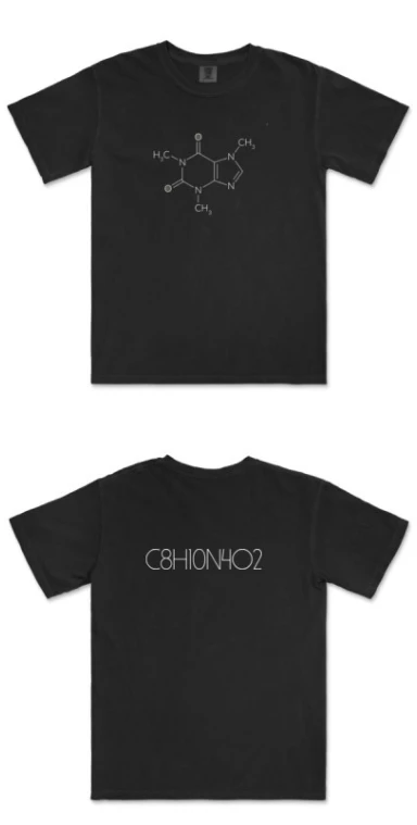 Chemical Composition! Coffee T-shirts by The Espresso Doctor! Enzy washed superior screen printed T-shirts, 130gsm 100% fine cotton with high count 40s combed for softness & comfort.