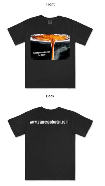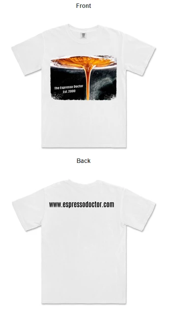 Naked Extraction! Coffee T-shirts by The Espresso Doctor! Enzy washed superior screen printed T-shirts, 130gsm 100% fine cotton with high count 40s combed for softness & comfort.