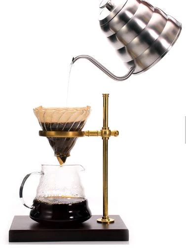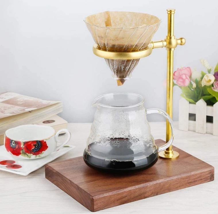 Pour Over Coffee Dripper Stand Cafe V60 Funnel Cup Holder Adjustable Height Drip Caffe Maker Filter Rack Pure Copper & Wood Base