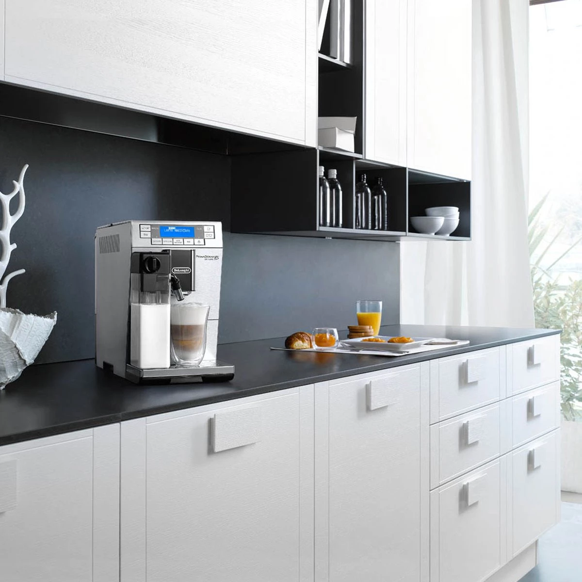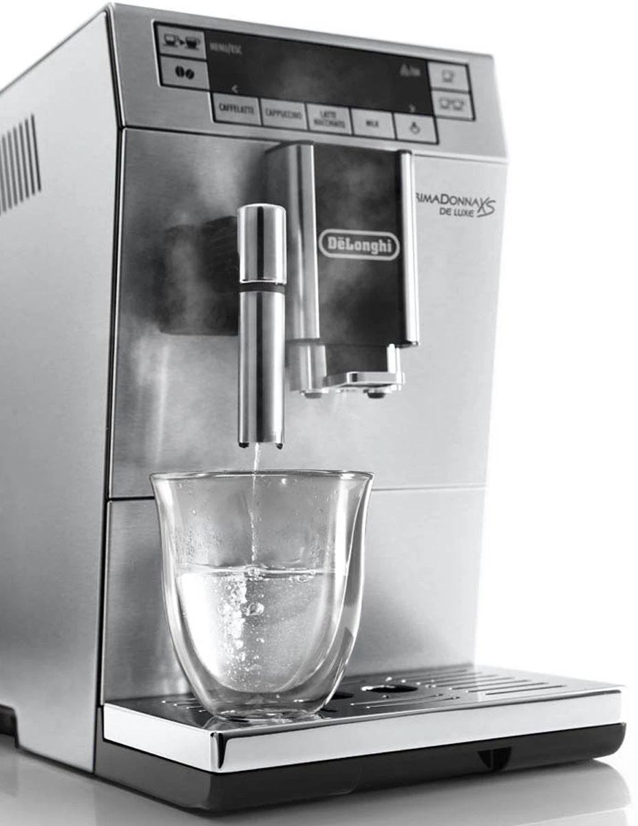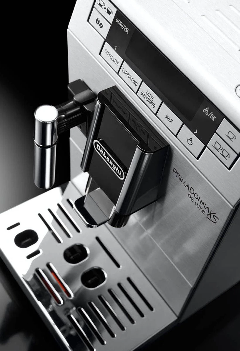 PrimaDonna XS DeLuxe is De’Longhi’s new slim, space-saving bean to cup coffee maker. The ultimate De’Longhi experience is once again refined with high quality technical functions and an innovative design to guarantee perfect results: prepare any type of coffee drink at the touch of a button. There is no desire the PrimaDonna XS DeLuxe can’t command.