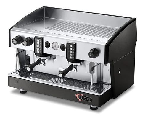 Electronic coffee machine. Four programmable doses per group, with manual brewing button. Two chromed steam wands (single on 1 group model) – one manual hot water tap. Water auto-fill, built in rotary pump.