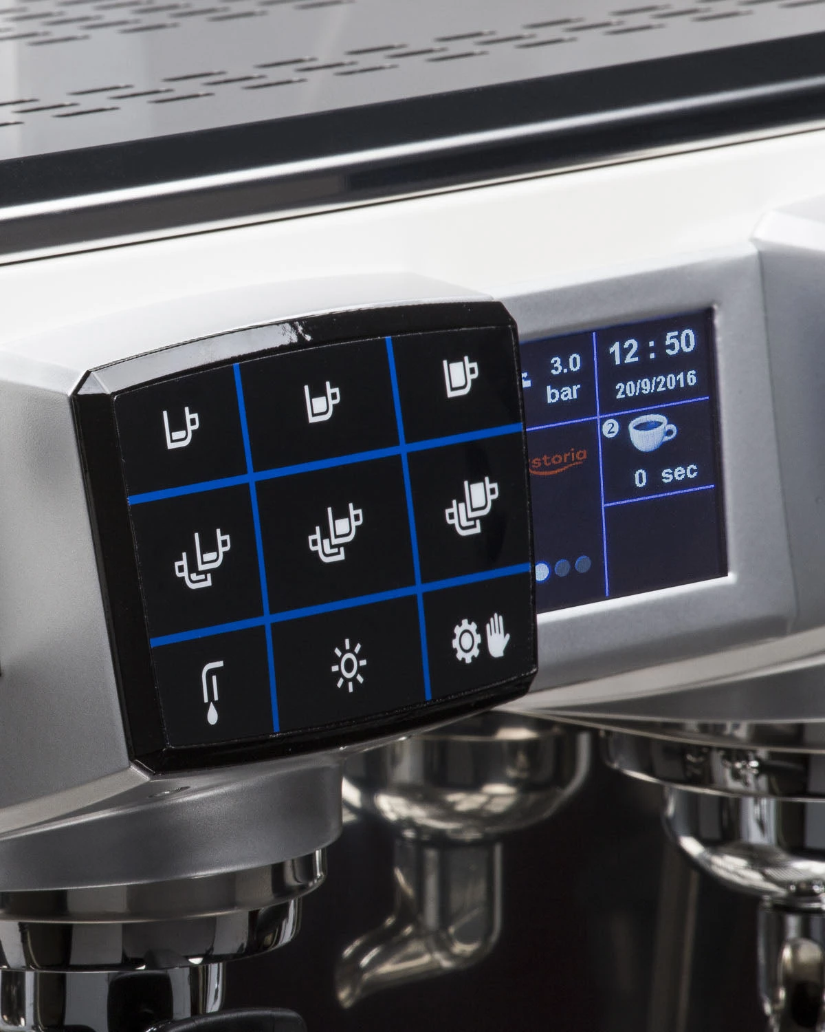 With Core600, interaction with the user speaks a new contemporary language through STB (Sensitive Touch Buttons), the sensitive backlit keyboard which, with just a slight touch, allows the barista to easily select the coffee to be dispensed. By jutting out from the machine, keypads are closer to the user, making interaction more intuitive and, in the TS version, offering a more comfortable display reading angle.