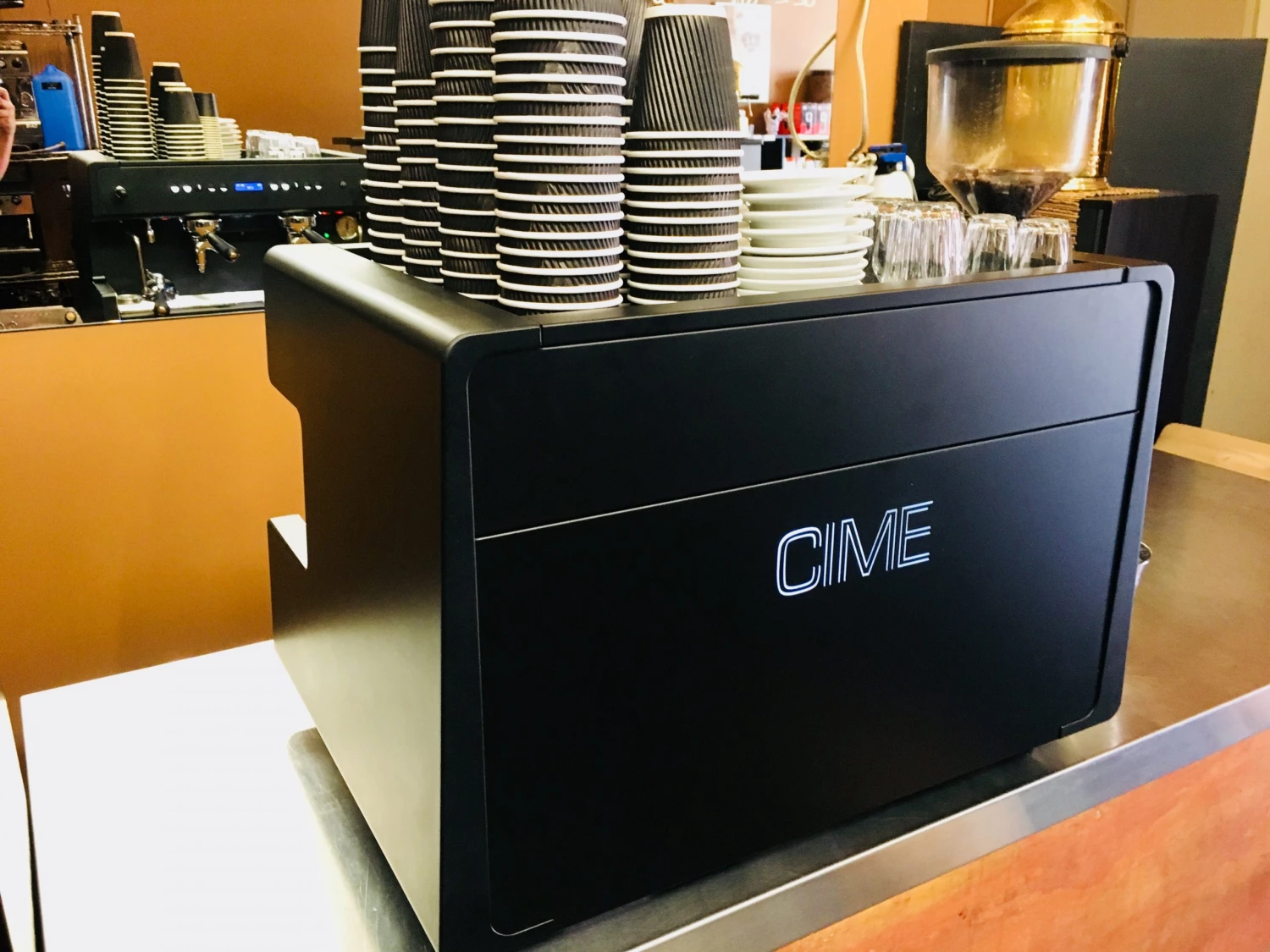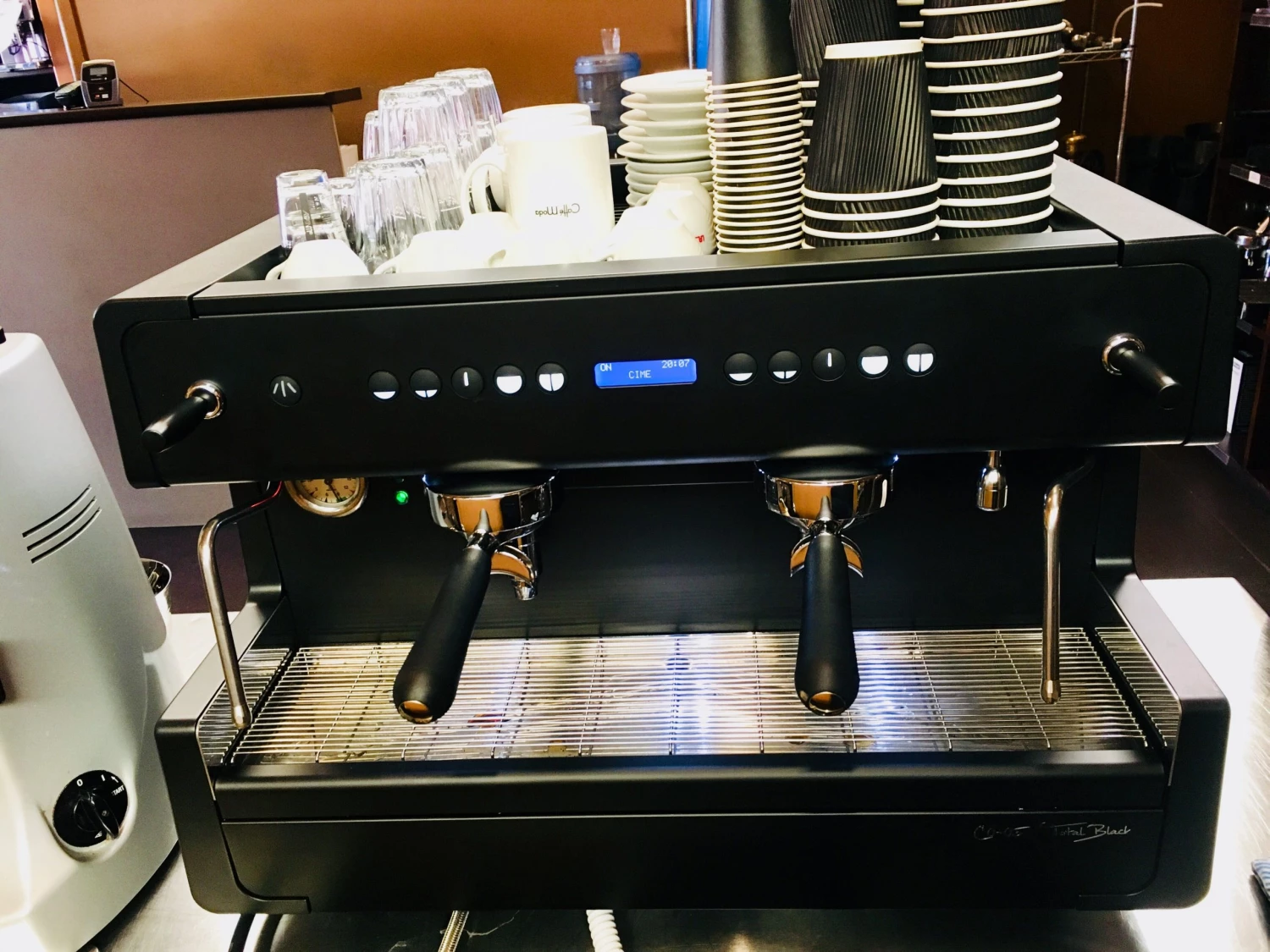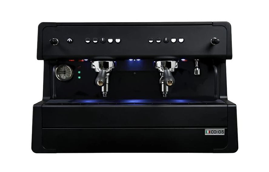 “Total Black” E61 high 2 group Espresso Machine. Pulse or lock steam levers. Black Matt with Backlit keypad & Logo complete this industrial look .