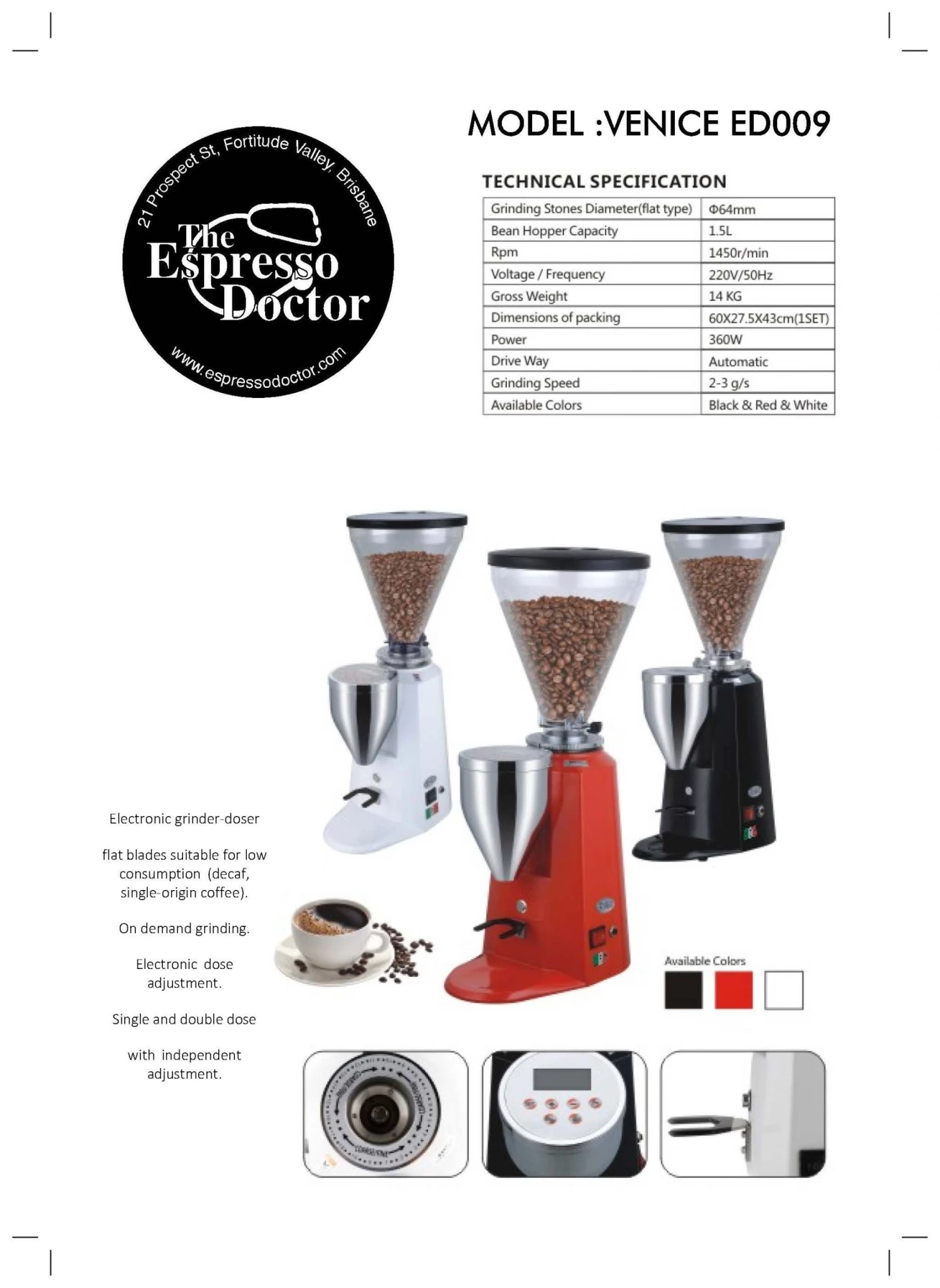Espresso Doctor VENICE ED009 Electronic Professional Grinder